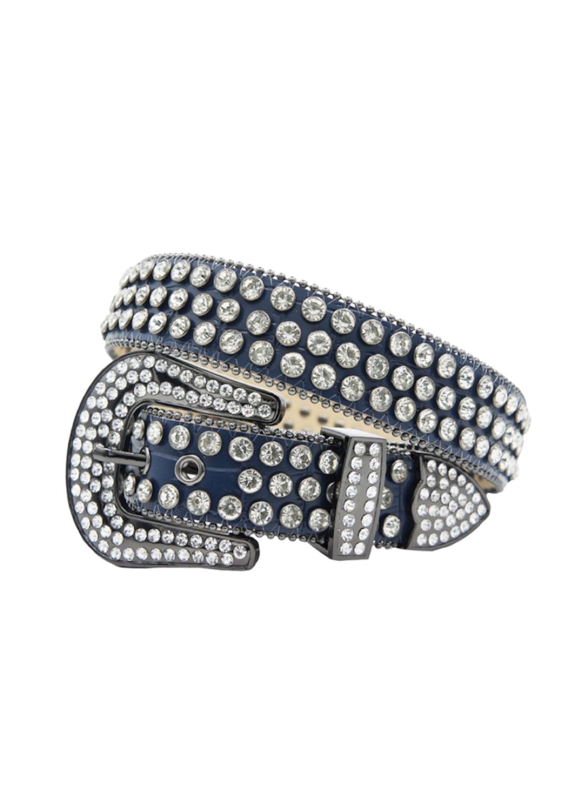 DNA Belt – Navy Blue Leather With Clear Stones – 51