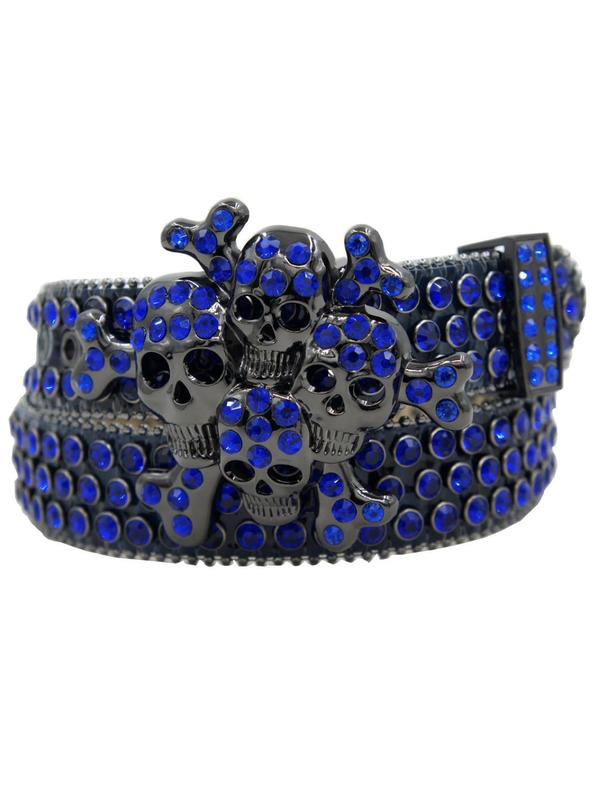 DNA Belt – Skull – Reflective Navy Snakeskin With Blue Stones – 547