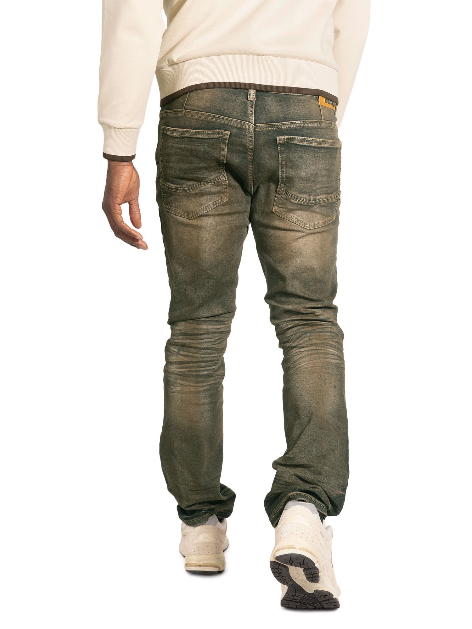 Step up your street style with LORENZINO ripped and repair denim jeans, crafted for an authentic urban edge. Featuring a wash of vintage, antique, and light wash finishes and an olive-tone tint, each pair delivers a unique, worn-in character. Distressed detailing and reinforced repair patches give it that bold, rugged look while maintaining everyday comfort and durability.