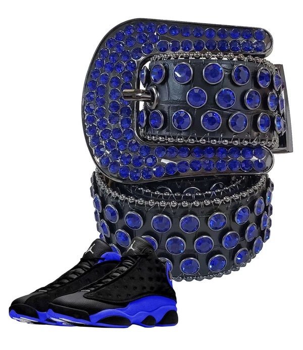 Rawyalty Belt – Stones – Black Leather With Blue Stones