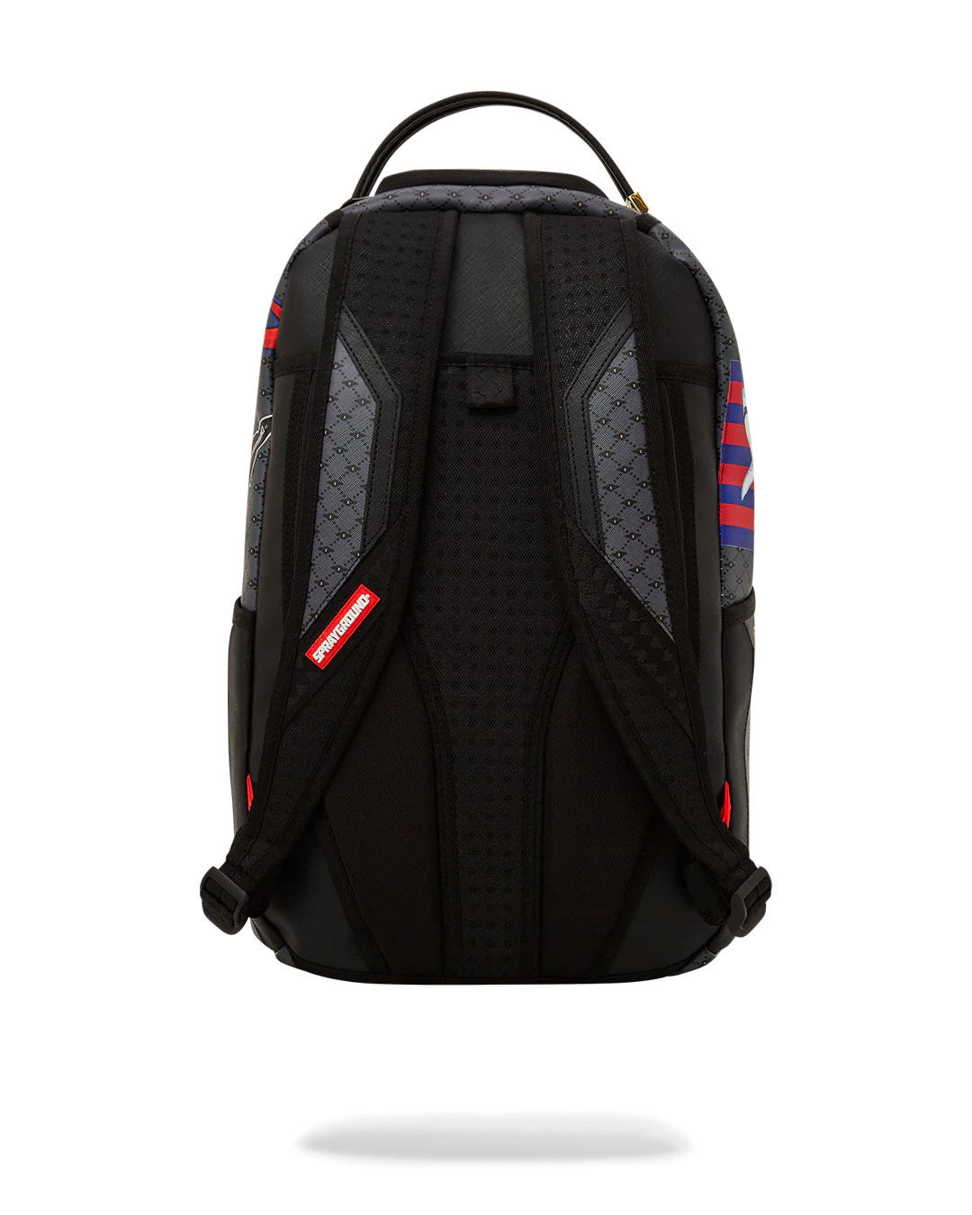 ExteriorDimensions: 18″ x 6″ x 11.5″ • Front zipper pocket • Side pockets • Zippered Stash pocket • Separate velour sunglass compartment • Ergonomic mesh back padding • Adjustable Straps for custom sizing • Gold zippers with metal hardware • Metal “Sprayground Authentic” badge • Slide through back sleeve connects to carry-on luggage to free your handsInteriorSeparate velour laptop compartment • Mesh organizer pocketFabric900D Polyester Fabri