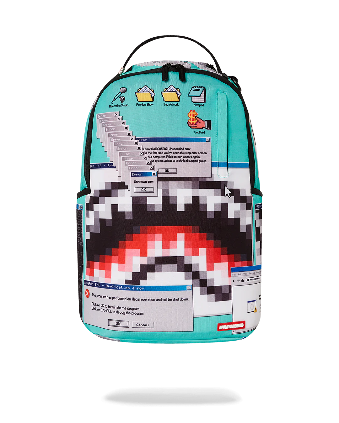 Exterior Dimensions: 18″ x 6″ x 11.5″ • Front zipper pocket • Side pockets • Zippered Stash pocket • Separate velour sunglass compartment • Ergonomic mesh back padding • Adjustable Straps for custom sizing • Gold zippers with metal hardware • Metal “Sprayground Authentic” badge • Slide through back sleeve connects to carry-on luggage to free your hands Interior Separate velour laptop compartment • Mesh organizer pocket