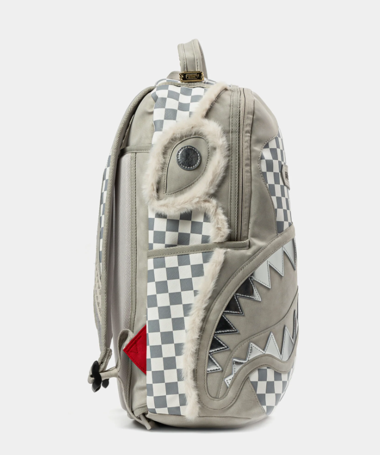 Classic streetwear meets cool-toned luxury with the Sprayground Gray Checker Shark Backpack. Featuring the brand’s signature Shark Mouth graphic across a sleek gray and white checkerboard pattern, this piece brings a modern twist to an iconic design.