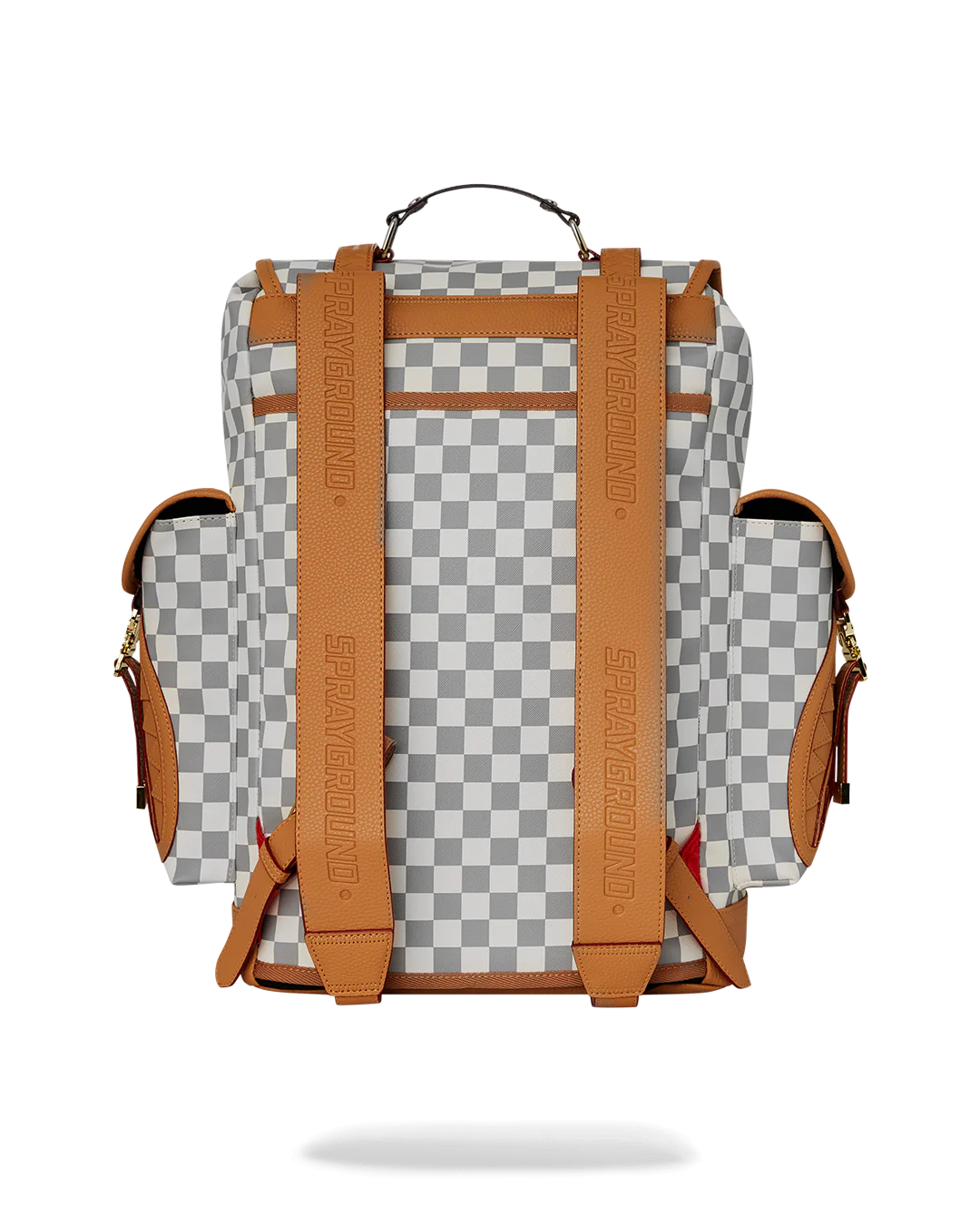 Exterior Dimensions: 18″ x 6″ x 11.5″ • Front zipper pocket • Side pockets • Zippered Stash pocket • Separate velour sunglass compartment • Ergonomic mesh back padding • Adjustable Straps for custom sizing • Gold zippers with metal hardware • Metal “Sprayground Authentic” badge • Slide through back sleeve connects to carry-on luggage to free your hands