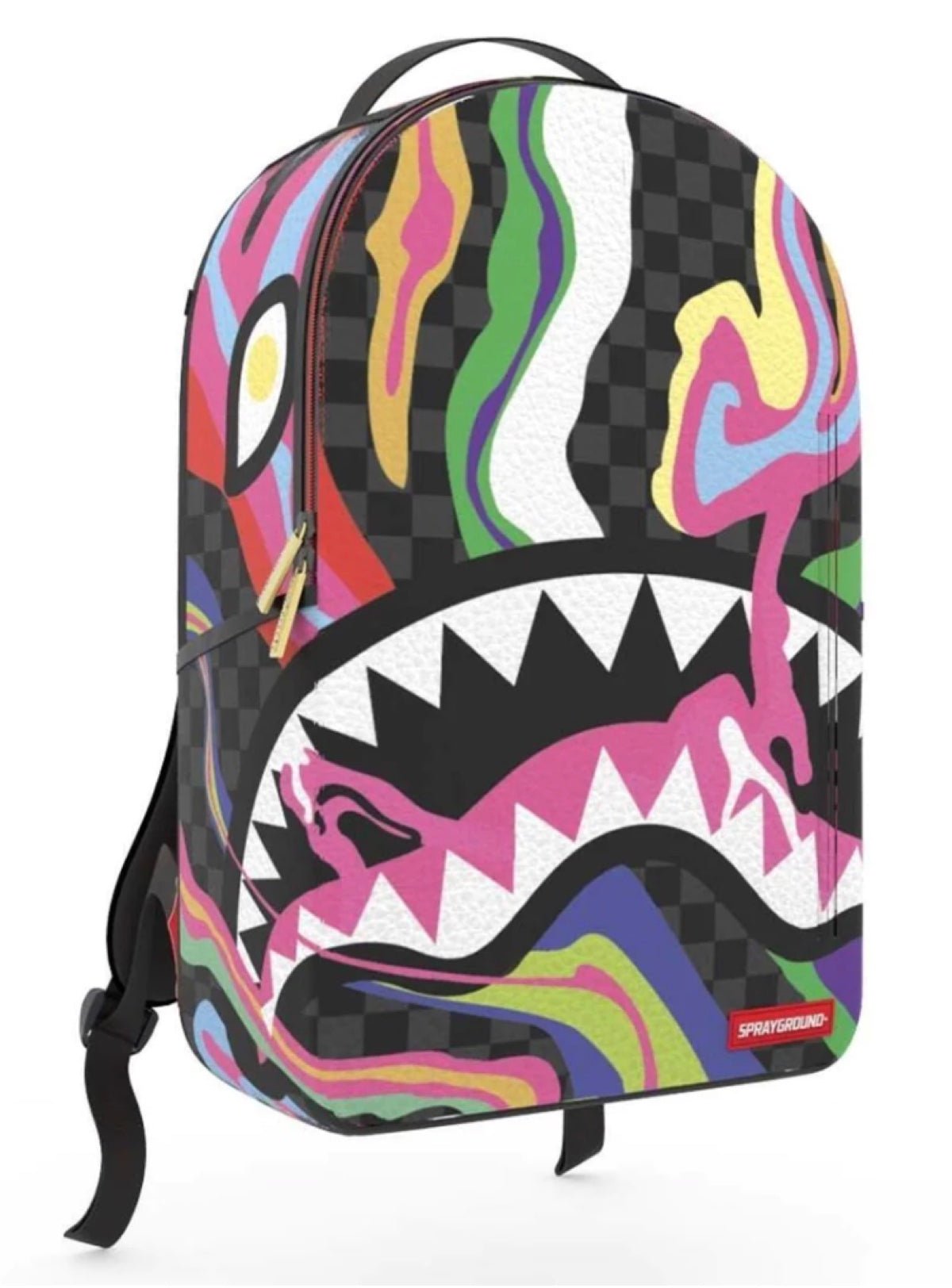 This Sprayground Backpack is the perfect accessory for any outfit. With a vibrant Laffy Taffy design, this bag is sure to make a statement. It features front zipper pocket, side pockets, a zippered stash pocket, a separate velour sunglass compartment, ergonomic mesh back padding, adjustable straps for custom sizing, gold zippers with metal hardware, and a metal Sprayground Authentic badge. It measures 18″ x 6″ x 11.5″ and is sure to keep all your necessities safe and secure.